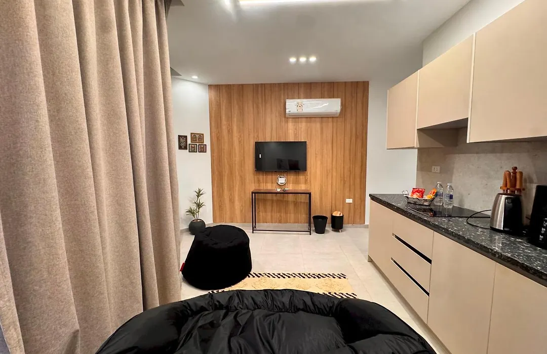 This accommodation provides an equipped kitchenette with all necessary utensils to prepare meals. El Giza railway station is a 70-minute drive from the apartment.